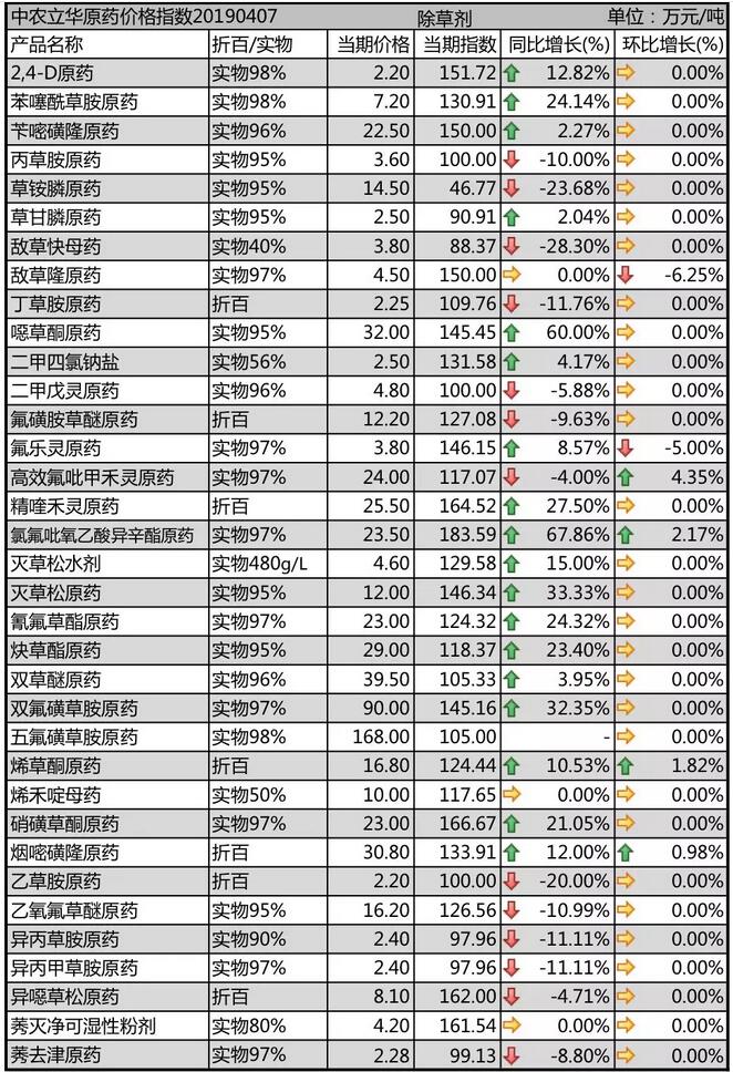 19年4月上旬國內農藥原藥除草劑價格走勢
