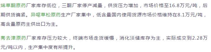 多款原藥貨源緊張價格提升