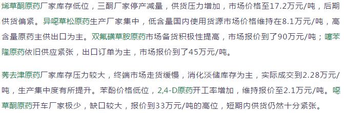 多款原藥貨源緊張價格提升