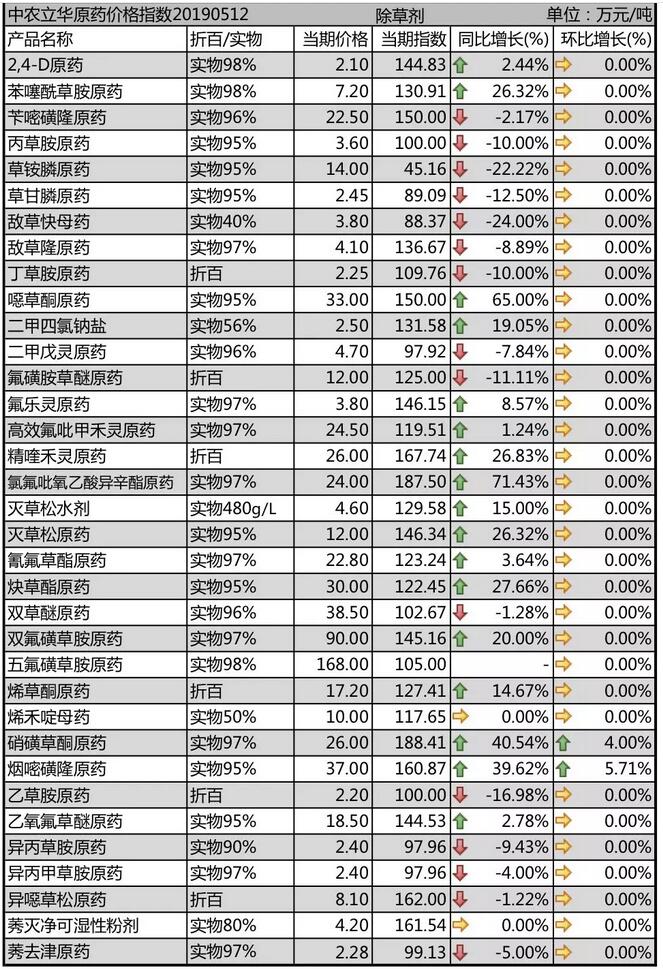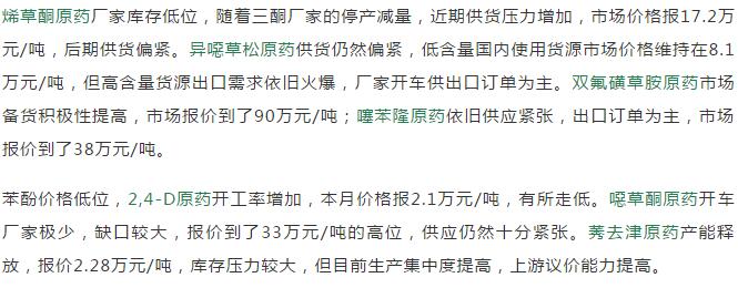 2019年5月中旬國內農藥原藥除草劑價格走勢