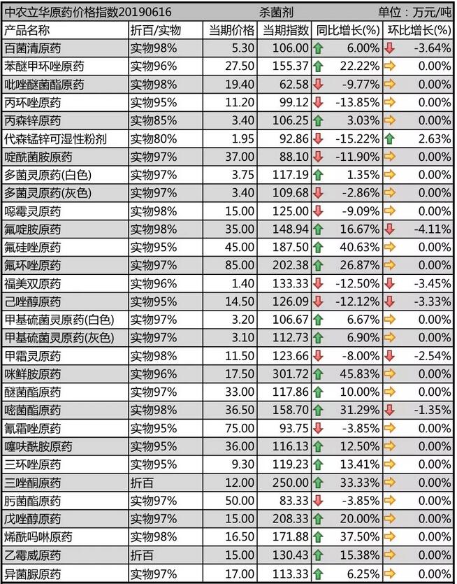 19年6月中旬國內農藥原藥殺菌劑價格走勢