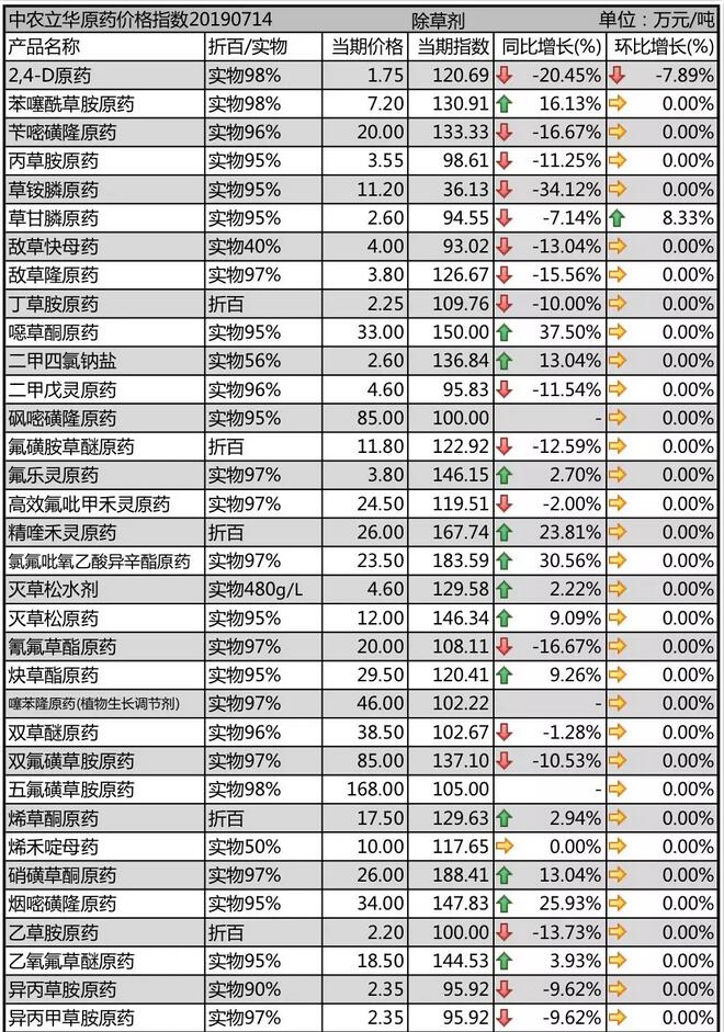 19年6月中旬國內農藥原藥除草劑價格走勢