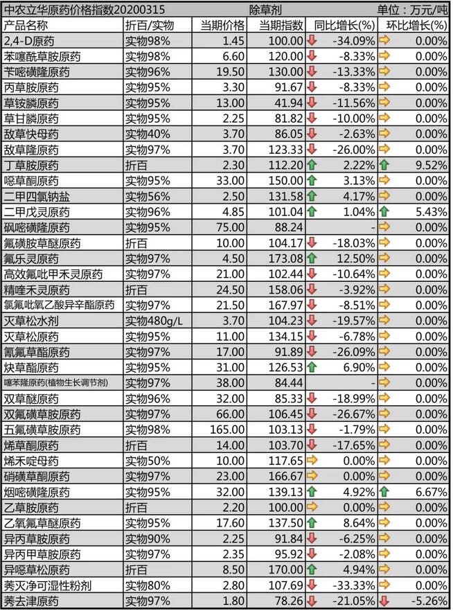 本月草(cao)甘(gan)膦原藥(yao)受開工率影(ying)響,供(gong)應不暢(chang),市場(chang)價格上(shang)調到2.25萬(wan)元(yuan)/噸(dun);草(cao)銨膦原藥(yao)上(shang)游(you)產能集中在湖北區域,導(dao)致供(gong)貨偏緊,年后上(shang)調報價至13萬(wan)元(yuan)/噸(dun);敵草(cao)快母藥(yao)用藥(yao)季節到來(lai),市場(chang)報價穩定在3.7萬(wan)元(yuan)/噸(dun),上(shang)游(you)原材(cai)料出現供(gong)應緊張,市場(chang)新一(yi)輪(lun)備貨預計會(hui)推高市場(chang)成交價。