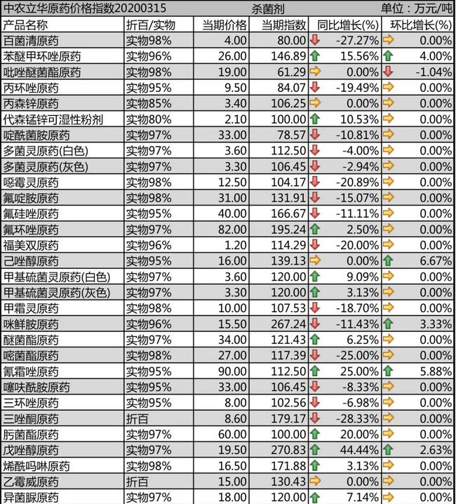殺菌(jun)劑的主要生產基(ji)地集(ji)中(zhong)在(zai)江浙地區,受前期(qi)環保政(zheng)策影響(xiang),開(kai)工率(lv)一直不足,三唑類原藥(yao)、氰霜唑原藥(yao)、咪鮮胺原藥(yao)、肟菌(jun)酯原藥(yao)等庫(ku)存低(di)位(wei),供應(ying)緊張。