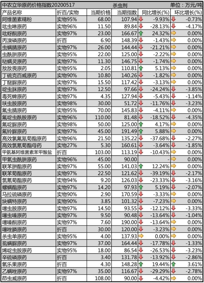 氟(fu)蟲(chong)腈原(yuan)(yuan)(yuan)藥廠家出(chu)口(kou)為(wei)主,目前(qian)價格報(bao)70萬(wan)(wan)元/噸(dun);隨著需求的(de)提升,目前(qian)氟(fu)啶脲(niao)原(yuan)(yuan)(yuan)藥供(gong)貨偏緊(jin),報(bao)50萬(wan)(wan)元/噸(dun);氟(fu)鈴脲(niao)原(yuan)(yuan)(yuan)藥報(bao)45萬(wan)(wan)元/噸(dun);虱螨脲(niao)原(yuan)(yuan)(yuan)藥庫存(cun)減少,上游(you)中間體印度進口(kou)受限,供(gong)應(ying)緊(jin)張(zhang),但終端制劑價格競爭激烈,市場價格沖高回落(luo),報(bao)37萬(wan)(wan)元/噸(dun);乙(yi)螨唑原(yuan)(yuan)(yuan)藥供(gong)應(ying)逐步平穩,報(bao)價35萬(wan)(wan)元/噸(dun)。