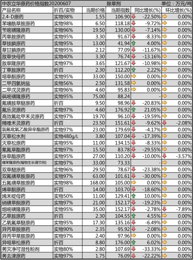 滅草(cao)(cao)松原(yuan)(yuan)(yuan)(yuan)藥(yao)上(shang)(shang)游(you)原(yuan)(yuan)(yuan)(yuan)材(cai)料上(shang)(shang)漲,終端價(jia)格有(you)所上(shang)(shang)調,市場報價(jia)11萬(wan)元/噸,期貨訂單價(jia)格略低,滅草(cao)(cao)松水劑報3.8萬(wan)元/噸,供應(ying)緊張;氰氟草(cao)(cao)酯原(yuan)(yuan)(yuan)(yuan)藥(yao)市場競(jing)爭激烈,終端補貨需求減少,目前報15.5萬(wan)元/噸以內;炔草(cao)(cao)酯原(yuan)(yuan)(yuan)(yuan)藥(yao)上(shang)(shang)游(you)原(yuan)(yuan)(yuan)(yuan)材(cai)料供應(ying)有(you)所緩解,價(jia)格有(you)所回調,報價(jia)到27萬(wan)元/噸。