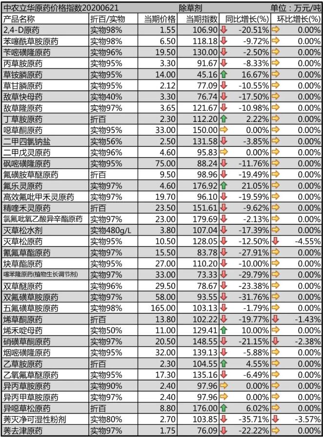 2,4-D原藥(yao)庫(ku)存(cun)減少,廠家(jia)排單(dan)增多(duo),報價(jia)1.55萬(wan)元/噸(dun)(dun);噁草酮原藥(yao)貨(huo)源緊張,內貿(mao)用(yong)藥(yao)結束(shu),出口(kou)訂單(dan)缺(que)口(kou)較(jiao)大,報價(jia)33萬(wan)元/噸(dun)(dun);莠去津原藥(yao)廠家(jia)庫(ku)存(cun)較(jiao)大,報價(jia)1.75萬(wan)元/噸(dun)(dun)。