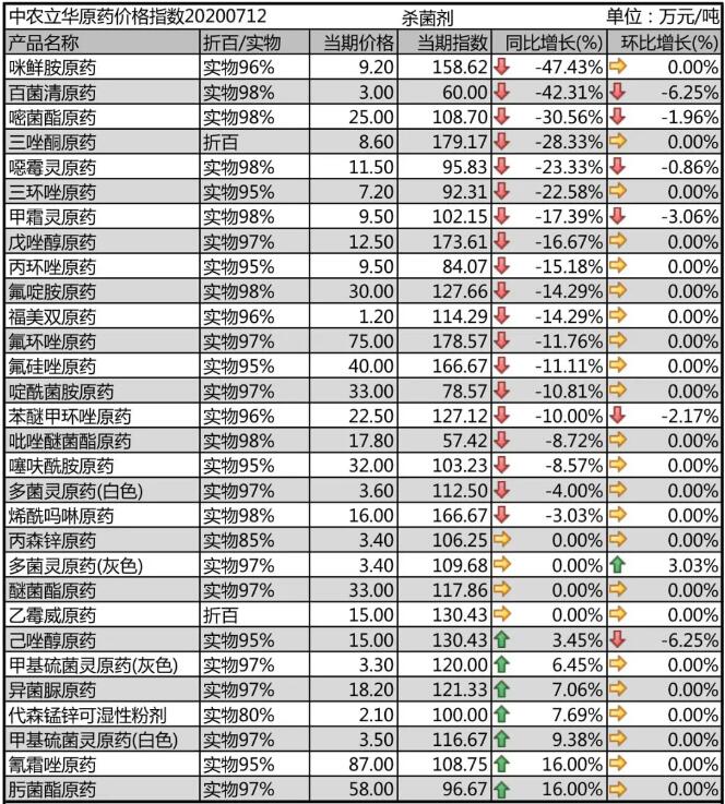 多菌靈(ling)(ling)原(yuan)藥(yao)、甲基硫菌靈(ling)(ling)原(yuan)藥(yao)生產廠家環保壓力較大,開工率一般,市(shi)場(chang)均報價(jia)3.6萬元(yuan)/噸(dun);噁霉靈(ling)(ling)原(yuan)藥(yao)市(shi)場(chang)價(jia)格報至11.5萬元(yuan)/噸(dun),需求弱勢;氟啶胺原(yuan)藥(yao)生產廠家集中,市(shi)場(chang)觀(guan)望情(qing)緒較重(zhong),目前價(jia)格下滑至30萬元(yuan)/噸(dun);咪鮮胺原(yuan)藥(yao)開工率提(ti)升,但市(shi)場(chang)需求進入淡季,價(jia)格大幅殺(sha)跌,報到(dao)9.2萬元(yuan)/噸(dun)。