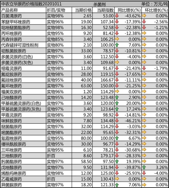 價格保持高位的殺菌劑品種在此次的回調中,面臨著更劇烈的下跌。苯醚甲環唑原藥開工率提升,市場價格回落至19萬元/噸;丙環唑原藥價格已經較長時間維持在低位,目前價格報9.2萬元/噸;己唑醇原藥印度貨源供應偏緊,市場(chang)(chang)價格報(bao)(bao)到14.2萬元(yuan)(yuan)/噸;戊(wu)唑(zuo)醇(chun)原(yuan)(yuan)藥(yao)廠家(jia)排單(dan)較多(duo),市場(chang)(chang)現貨緊張,報(bao)(bao)價穩定在9.5萬元(yuan)(yuan)/噸;三環(huan)唑(zuo)原(yuan)(yuan)藥(yao)廠家(jia)開工率也有所提升,市場(chang)(chang)價格回落(luo)至(zhi)6.1萬元(yuan)(yuan)/噸;氟(fu)環(huan)唑(zuo)原(yuan)(yuan)藥(yao)市場(chang)(chang)貨源(yuan)偏緊,進(jin)入市場(chang)(chang)淡季,流通貨源(yuan)價格報(bao)(bao)63萬元(yuan)(yuan)/噸。