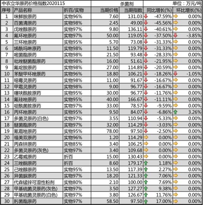 苯醚甲環唑原藥開工率提升,市場價格回落至18.8萬(wan)元(yuan)(yuan)/噸,市場(chang)逐(zhu)步啟(qi)動(dong);丙環唑(zuo)原(yuan)藥(yao)價(jia)(jia)(jia)格(ge)已經較長時(shi)間(jian)維持(chi)低(di)位,基礎(chu)原(yuan)材(cai)料的上漲,出口訂單增(zeng)多(duo),導致價(jia)(jia)(jia)格(ge)反(fan)彈,國內市場(chang)前(qian)期(qi)簽訂訂單較多(duo),目(mu)前(qian)價(jia)(jia)(jia)格(ge)報(bao)9.5萬(wan)元(yuan)(yuan)/噸;己唑(zuo)醇(chun)原(yuan)藥(yao)開(kai)工(gong)率(lv)(lv)開(kai)始提(ti)升,市場(chang)價(jia)(jia)(jia)格(ge)報(bao)到13.5萬(wan)元(yuan)(yuan)/噸;戊唑(zuo)醇(chun)原(yuan)藥(yao)廠家開(kai)工(gong)率(lv)(lv)提(ti)升,受上游中間(jian)體上漲影響,目(mu)前(qian)報(bao)價(jia)(jia)(jia)9.8萬(wan)元(yuan)(yuan)/噸;三環唑(zuo)原(yuan)藥(yao)廠家開(kai)工(gong)率(lv)(lv)也有所(suo)提(ti)升,但(dan)基礎(chu)原(yuan)材(cai)料有所(suo)上漲,市場(chang)價(jia)(jia)(jia)格(ge)報(bao)到5.7萬(wan)元(yuan)(yuan)/噸;氟環唑(zuo)原(yuan)藥(yao)市場(chang)開(kai)工(gong)率(lv)(lv)提(ti)升,流通貨源價(jia)(jia)(jia)格(ge)下(xia)滑(hua)到50萬(wan)元(yuan)(yuan)/噸,隨著價(jia)(jia)(jia)格(ge)下(xia)行(xing),終(zhong)端制(zhi)劑的性(xing)價(jia)(jia)(jia)比提(ti)升。