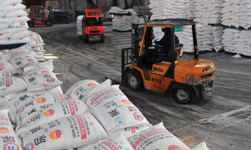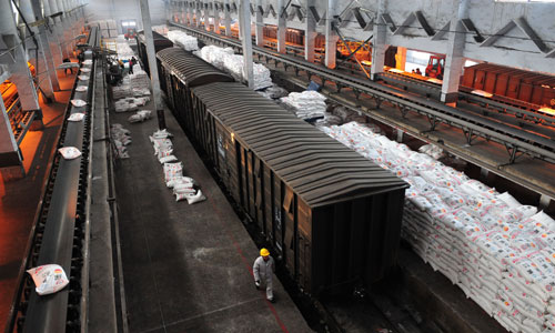 2月17日,中國石油寧夏石化公司營銷調運部員工準備將化肥外運。 年產尿素130萬噸、復合肥40萬噸的中國石油寧夏石化公司全體員工“戰嚴寒,保裝置”,按時完成生產任務,確保化肥及時運往河南、內蒙古、新疆、陜西等10多個省(區)銷售,及時服務春耕生產。新華社記者 劉泉龍 攝