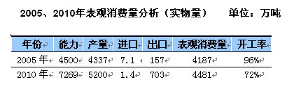產能問題:據統計,國內尿素行業產能過剩程度正在逐年加劇。從下表中可以看出,全國總產能已從2005 年的4500萬噸猛增至2010年的7300萬噸,漲幅達到61.5%。但表觀消費量似乎并沒有明顯增加,依然保持4800萬噸左右的水平。至此不難發現,為了解決供大于求的問題,企業不得不被迫減產或停產。產能過剩已給行業埋下了整合的伏筆。
