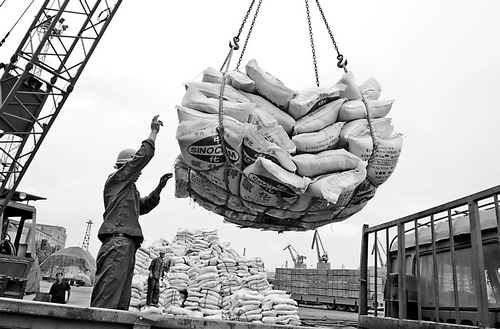 在今年化肥出口關稅稅率下(xia)調政策拉動下(xia),江蘇連(lian)云港(gang)港(gang)口出口化肥(fei)(fei)形(xing)勢看好,截至8月中旬,該港(gang)口已出口化肥(fei)(fei)35萬噸。國內(nei)一(yi)些(xie)化肥(fei)(fei)企業也抓(zhua)住市場商機,努力多產化肥(fei)(fei)用(yong)于出口。圖為8月21日(ri)碼頭(tou)工人正(zheng)在裝運一(yi)批出口化肥(fei)(fei)。